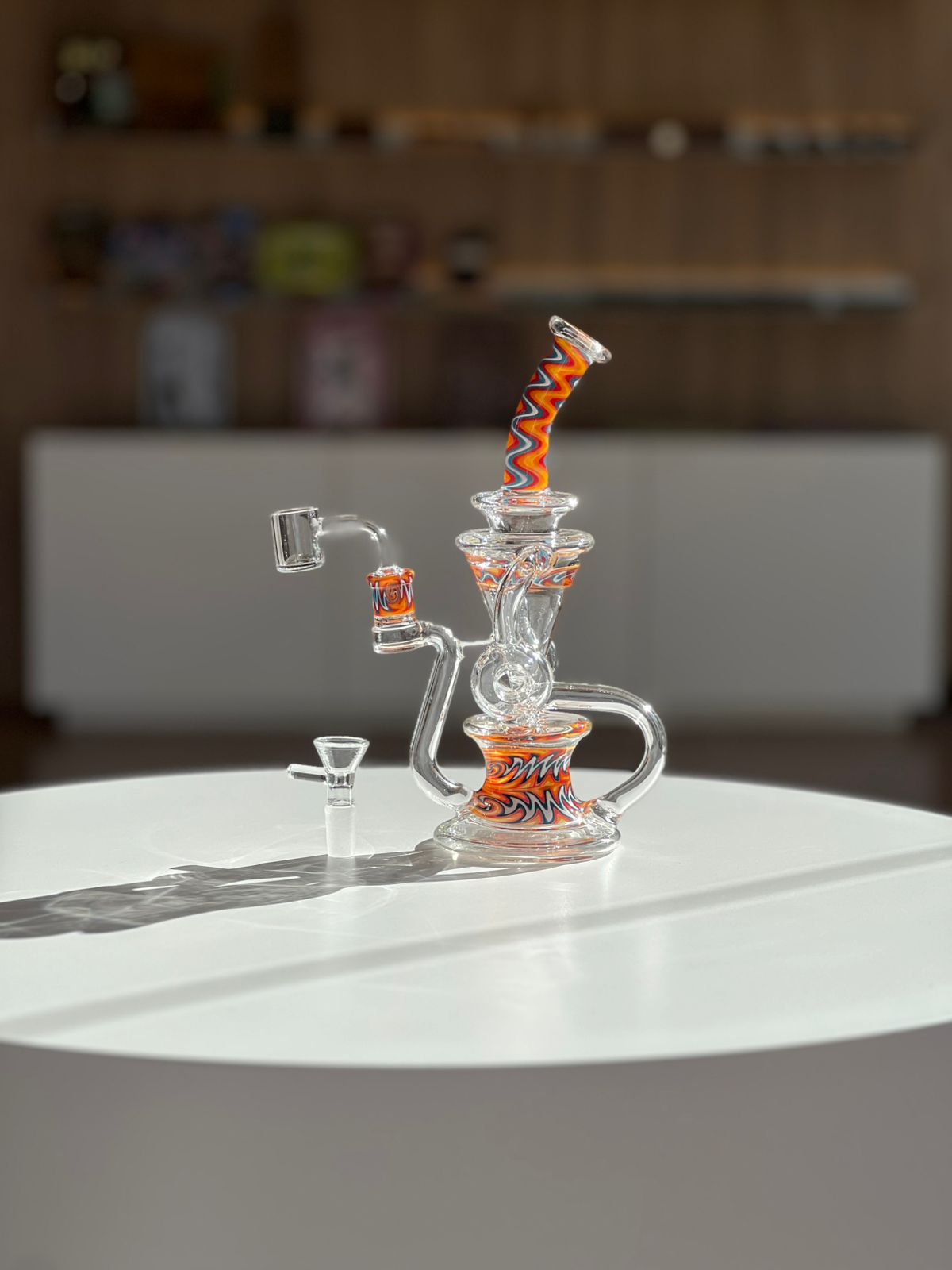 O Bong Premium Loop da Squadafum é uma peça híbrida que combina estilo, funcionalidade e inovação. Projetado para atender tanto aos apreciadores de matéria seca quanto aos adeptos de extrações, destaca-se pelo exclusivo sistema Recycle de filtragem, que recicla a fumaça para proporcionar uma experiência mais limpa e suave