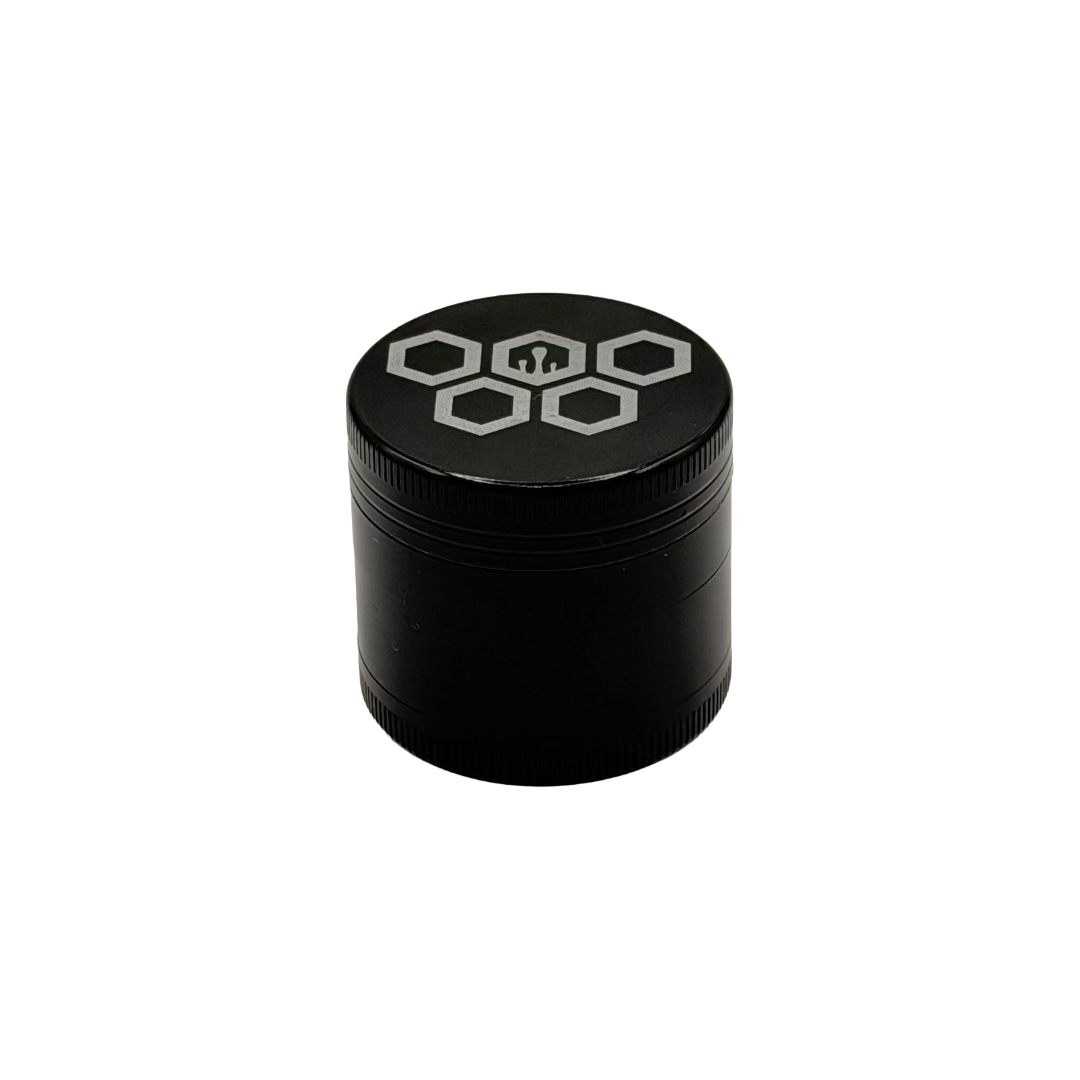 O sistema de 4 partes permite uma trituração completa, contando com peneira interna para separação de partículas mais finas e reservatório para armazenamento.