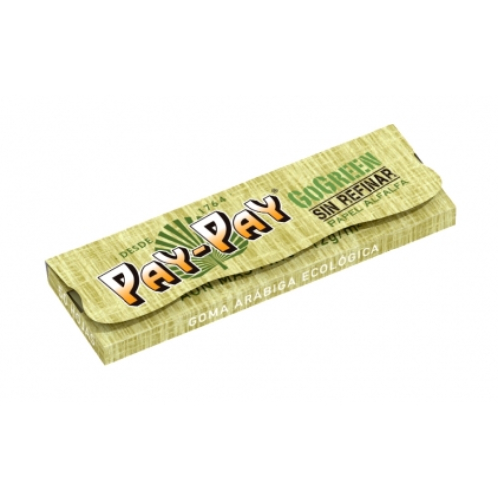 Seda de Alfafa Go Green 1/4 Pay-Pay com 50 folhas. Produzida com fibras naturais de alfafa, oferece uma queima uniforme e uma experiência mais natural.